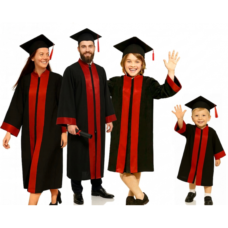 Tam Set: Ürün fiyatına cübbe ve cübbe ile tam uyumlu kırmızı püsküllü mezuniyet kepi dahildir.